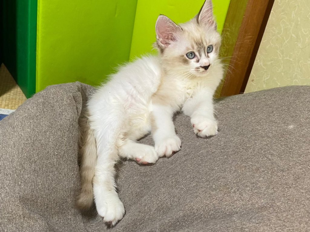 スカイくん ♂ 投稿日: 2023年1月17日2023年8月17日 投稿者: hananeko-chiba キレイな青いお目目♡スカイくん ♂ 2023/4/29生まれ(推定) 白血病検査陰性猫エイズ検査陰性ワクチン 1回接種済み駆虫・検便 済避妊去勢手術未マイクロチップ無 スカイくん おっとりしてて人が大好き。人のお腹の上でモミモミします。身体が大きいのに皆んなの後ろで見ているような控えめな所が有ります。フワフワの毛と青いお目々がチャームポイント。元気に暴れてるかと思うとお膝に乗ってグルグル喉を鳴らしてたりします。おとめちゃんとは良く追いかけっこをして遊んでます。 戻る