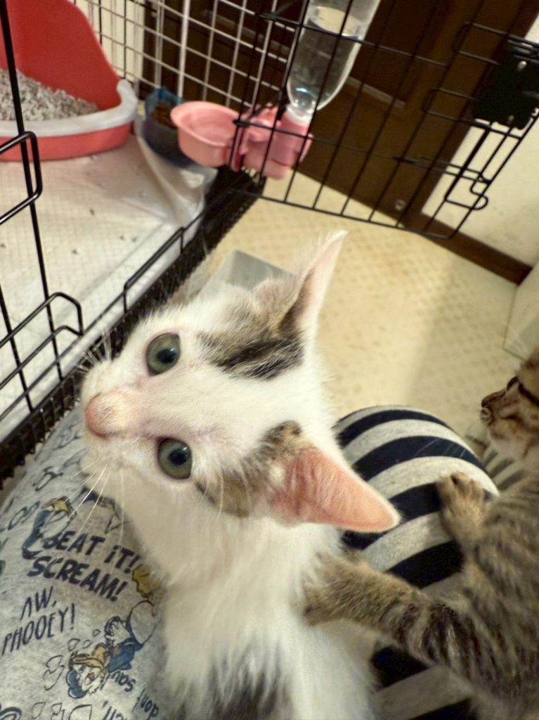 某会社に現れた仔猫たち。社員さんたちでミルクをあげていたけど、人が不在になる時間があり、ミルクの子には過酷ということで、仲間のボランティアさんが保護しました。保護時、まだミルクっ子だったので、こちらで引き継ぎました。
