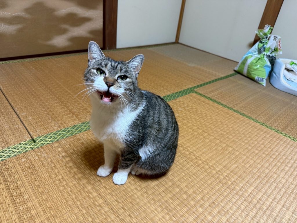 とても人懐こく、大きな声でアピールする食いしん坊さんです。