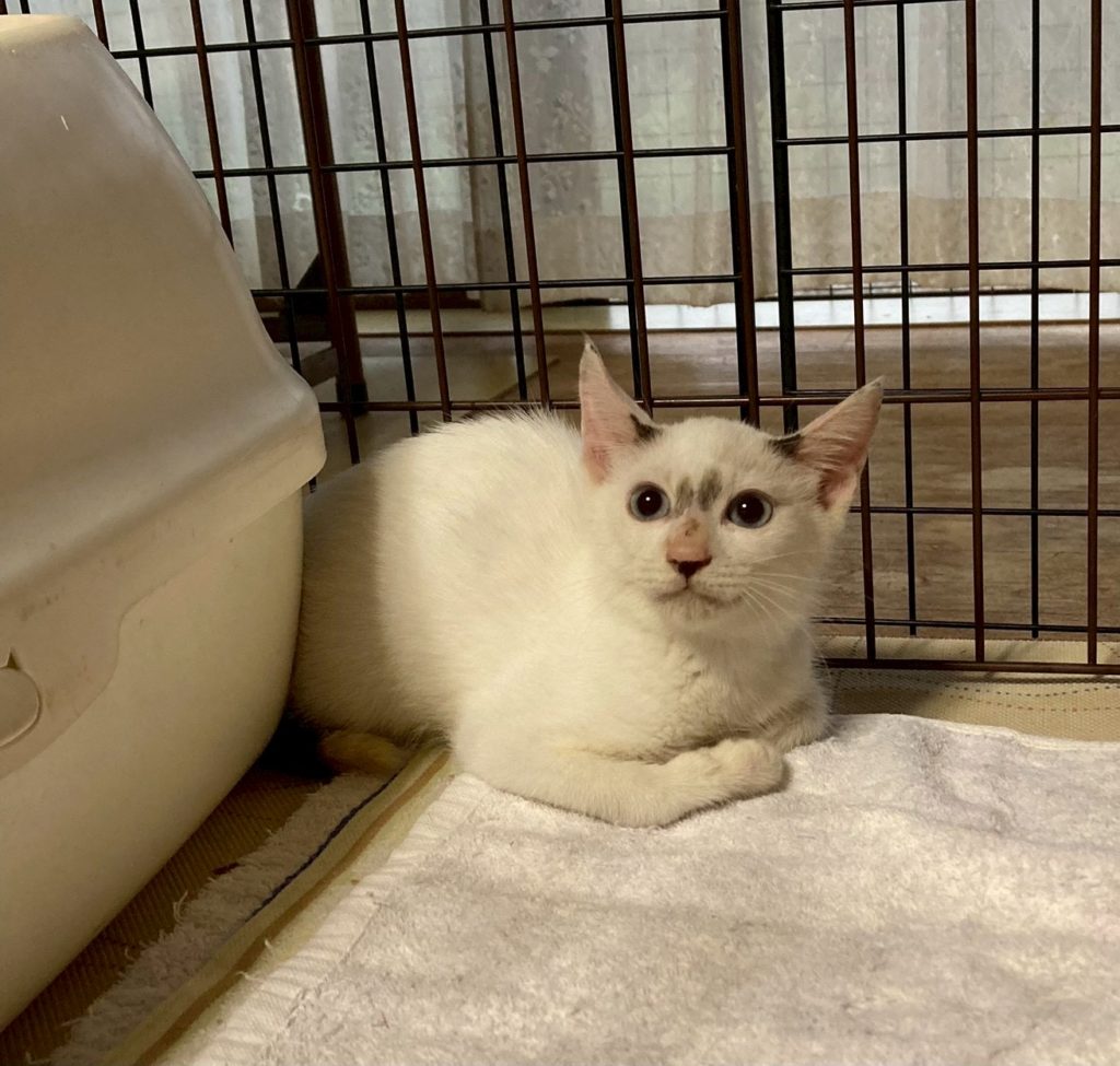 キャンディちゃん ♀ 投稿日: 2025年9月7日2025年12月30日 投稿者: hananeko-chiba 青い目の白三毛♡キャンディちゃん 2025年6月10日生(推定) 白血病検査陰性猫エイズ検査陰性ワクチン 1回接種済み(2回目は9月初旬予定)駆虫・検便 済避妊去勢手術未(10月初旬予定)マイクロチップ無 TNRを進めていた現場でなかなか捕まらない子が産んだ子です。母猫はその後手術しました。 青い目をした白三毛ちゃんです。まだ怖がりでシャーが出ますがシャンプーも爪切りもさせてくれました。 一緒に居る子猫と共にか、若い先住ちゃんがいるお家希望します。くださる方を希望します☘️ 戻る