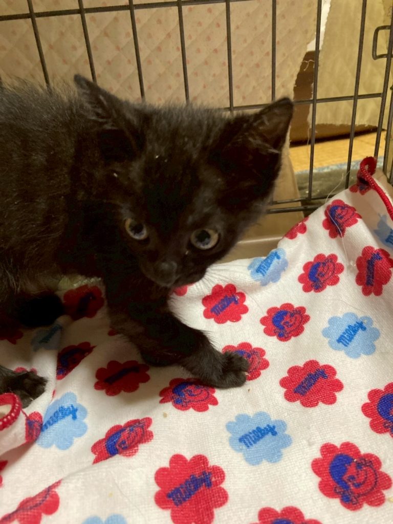 涼くん ♂ 投稿日: 2025年11月10日2026年1月24日 投稿者: hananeko-chiba おっとり男子♡涼くん 2025年9月1日生まれ 白血病検査陰性猫エイズ検査陰性ワクチン 1回接種済み(11月末頃予定)駆虫・検便 済避妊去勢手術未(2026年1月頃予定)マイクロチップ無 TNRを依頼された現場の近くで、母猫が帰ってこないので保護して欲しいと依頼されました。全身黒い子です。兄弟の中で1番小さい子です。おっとりしています。兄弟一緒か、若い先住猫さんが居るお家希望です☘️ 戻る